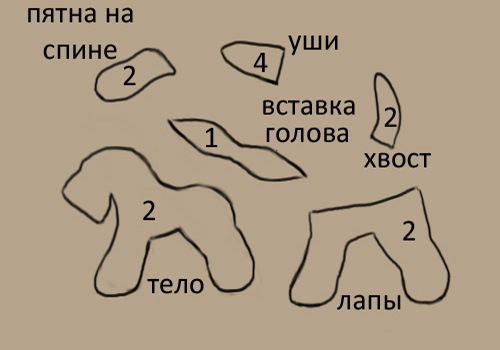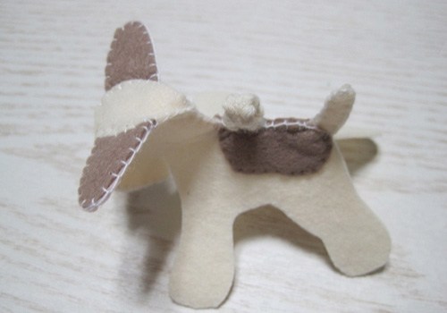 Le modèle de chien doit être imprimé et des détails en feutre. Veuillez noter que toutes les pièces doivent être appariées.