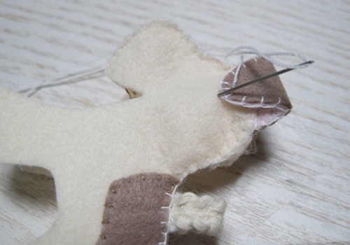 Cousez ensemble les pièces pour les oreilles avec une couture de points. Faites la même chose avec la queue.