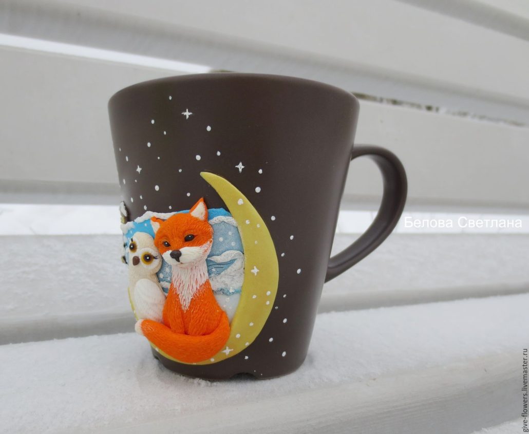 Laver, sécher et dégraisser le bas-relief. En utilisant de la colle résistante à la chaleur, collez la figurine à la tasse. Vous pouvez utiliser une telle tasse au plus tôt dans la journée.