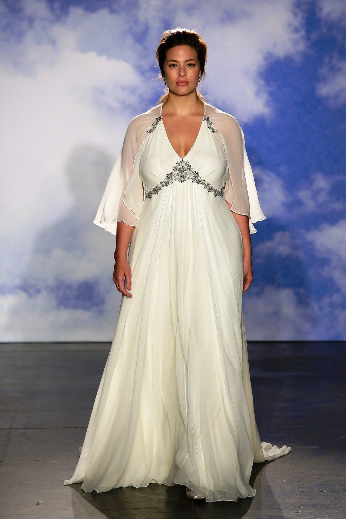 La ligne de robes de mariée de grande taille est assez diverse. Toutes les tenues soulignent la finesse des lignes et des courbes de la figure. L'une des options de robe de mariage les plus réussies pour les femmes en surpoids était une robe à la grecque. Un tel modèle n'a pas perdu de sa pertinence depuis l'Antiquité, son style n'étant soumis à aucun ajustement supplémentaire. La seule différence entre les robes de style grec entre elles réside dans l'option décoration. Ce modèle rend la poitrine parfaite et cache visuellement l'estomac en raison de la taille haute.