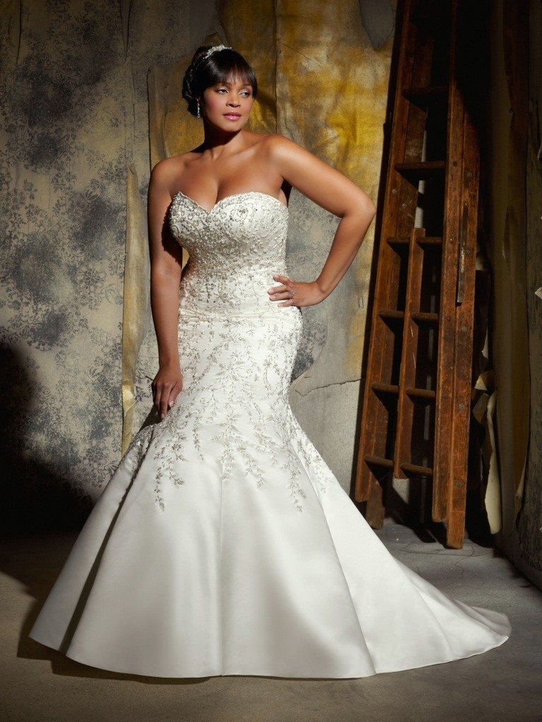 Robe de mariée moulante en pleine figure: exemples frappants sur la photo