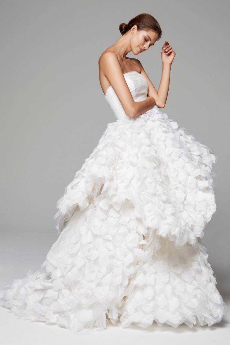 Viktor et Rolf, Marchesa, Vera Wang, Naeem Khan, Carolina Herrera, Oscar de la Renta, Monique Lhuillier, Sachin et Babi, Christian Siriano, Anne Barge et Elie Saab, ont présenté des modèles de robes de mariée d'une incroyable beauté. Parmi les nouveautés des robes de mariée, on trouve des modèles vintage, des produits à la coupe laconique, un décor accrocheur, des silhouettes moulantes et des manches magnifiques. Le choix est énorme. Les robes de mariée royales avec un long train s'adaptent parfaitement à la silhouette. La séance photo de mariage sera incroyable si vous choisissez l'un des modèles de robes de créateurs.