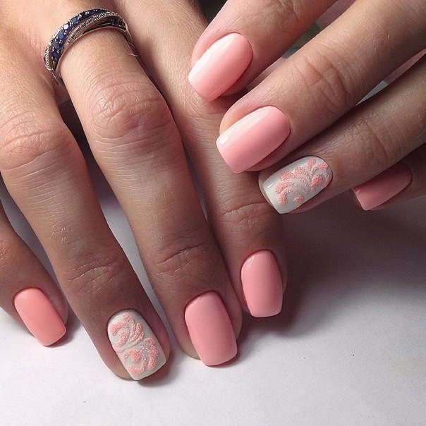 Vous pouvez ajouter un effet «velouté» visuel à l'aide de poudre et de sable. Ce type de décoration n'en est pas moins adapté aux manucures légères et le rend vraiment charmant. Faites des accents ou décorez tous les ongles, c'est votre choix, les deux options seront superbes en combinaison avec ce type de manucure. Une option de décoration éprouvée est constituée de dessins composés de lignes lisses et fines. Pour cette méthode, des boucles abstraites, des motifs floraux, de la dentelle, etc. conviennent.