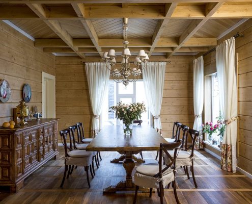 L'intérieur des maisons rurales en bois - options de design et de style sur la photo