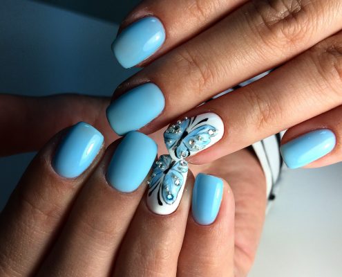 Papillons sur les ongles: solutions intéressantes pour une manucure ludique et douce