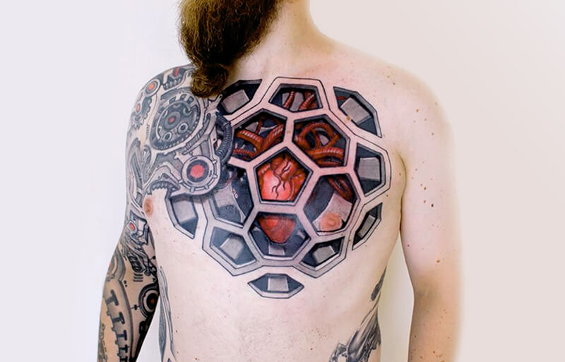 Le tatouage biomécanique masculin semble bénéfique pour le bras, la jambe, le dos ou la poitrine.