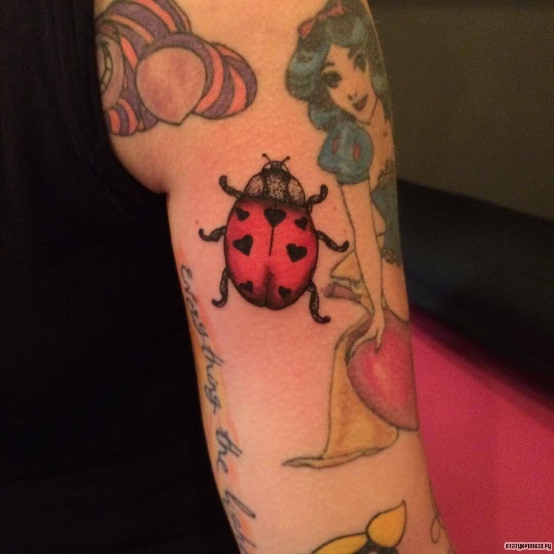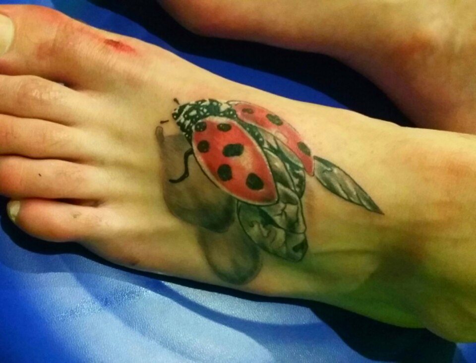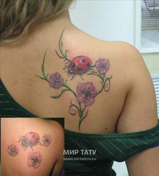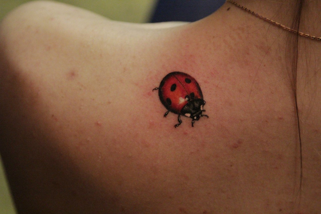 Tatouage de coccinelle: signification, croquis, beaux exemples sur la photo