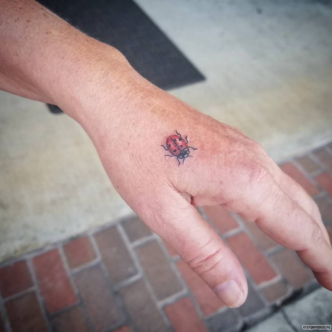Le tatouage de coccinelle est complètement universel. Il est à noter qu'un tel dessin conviendra à tout le monde. Fondamentalement, il est choisi par des hommes énergiques, positifs et motivés. Pour eux, cela est interprété comme positif, harmonie à travers le monde, insouciance et joie de la jeunesse. Les hommes préfèrent représenter une coccinelle sur le tibia, les bras, les épaules ou le cou.