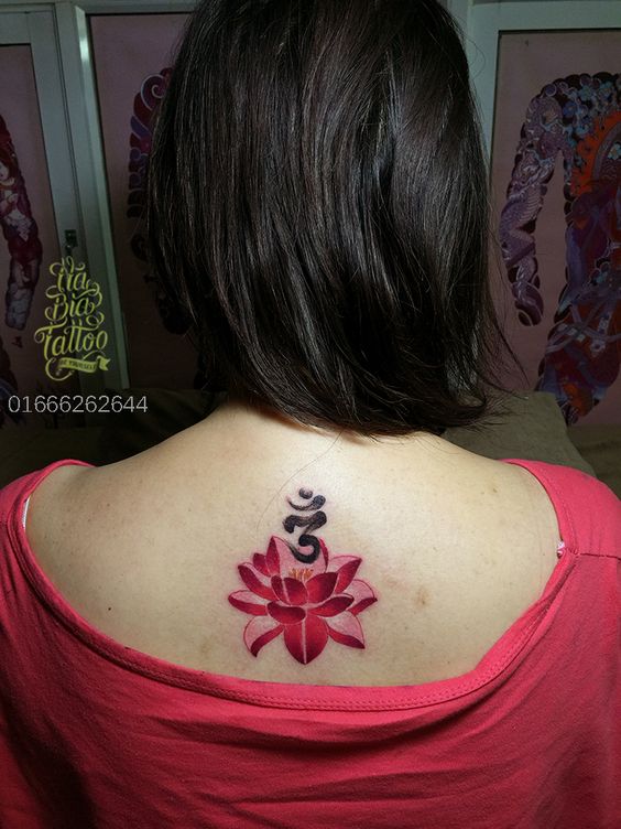 Les tatouages effectués sur des parties du corps telles que l'abdomen, la cuisse ou le dos sont réalisés dans des compositions plus grandes. Le vol d'imagination du maître peut être illimité. Pour un tel tatouage de lettres, des images de flamme, d'eau, une rafale de vent dans le feuillage ou même une image d'animaux conviennent.