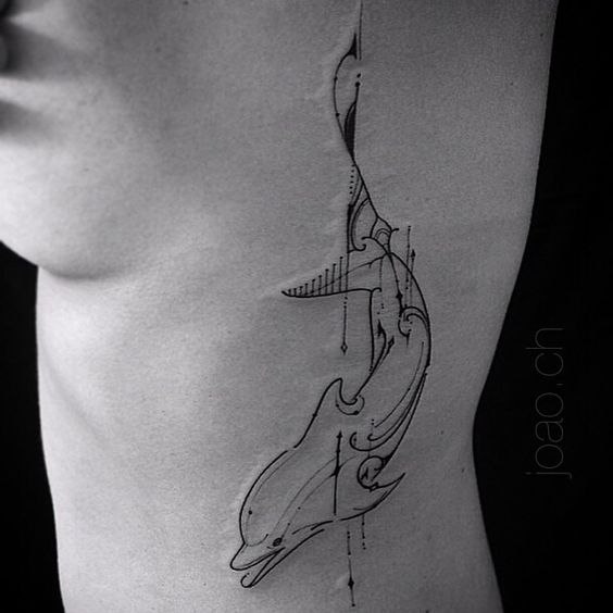 Les dauphins dans le style du réalisme, avec des ornements ou des motifs éthiques, auront l'air très bien. Vos préférences et vos goûts jouent ici un rôle important. Les domaines d'application les plus populaires sont l'épaule, la cheville, le poignet, le ventre ou la poitrine. Pour compléter la photo, vous pouvez utiliser le magnifique paysage de la mer au coucher du soleil ou à l’aube, ou même représenter un dauphin sous forme d’abstraction. Cette dernière option est généralement réalisée dans un motif populaire.
