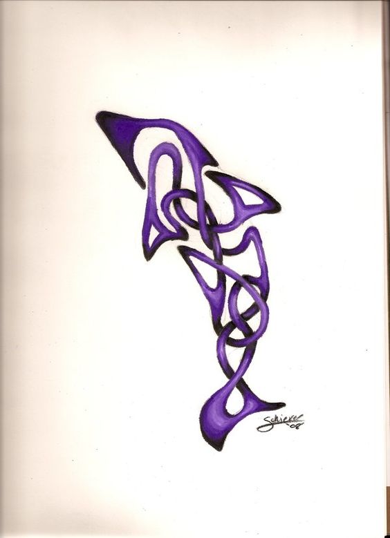 Aujourd'hui, un tel tatouage peut avoir plusieurs significations. Cela dépend du style d'application. Le plus populaire est la stylisation celtique. Ce sont les Celtes qui ont étudié les dauphins pendant longtemps. Ils ont eu beaucoup d'émotions et sont tombés amoureux de ces animaux en raison de leur nature paisible et enjouée. Cela a conduit à la nouvelle signification du tatouage de dauphin: liberté, joie, amour de la vie et positif. Même dans la culture celtique, le dauphin symbolisait l'élément de l'eau, puisqu'il s'agit d'un habitant de la mer. Les Celtes considéraient l'image d'un dauphin comme le signe d'une transition d'un stade de la vie à un autre. Tout cela parce que les dauphins ont livré des noyés sur leur dos, ont aidé des navires égarés.