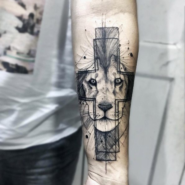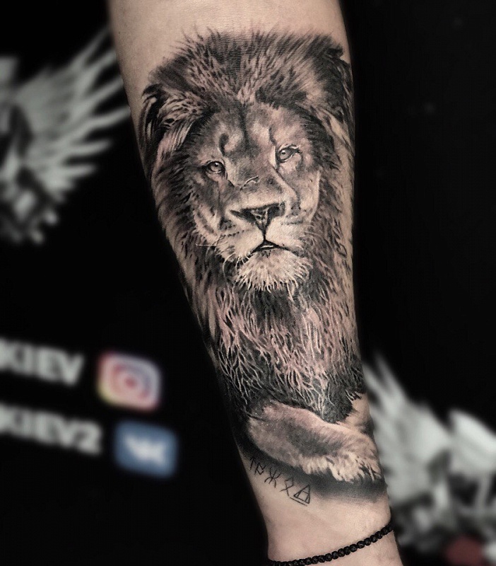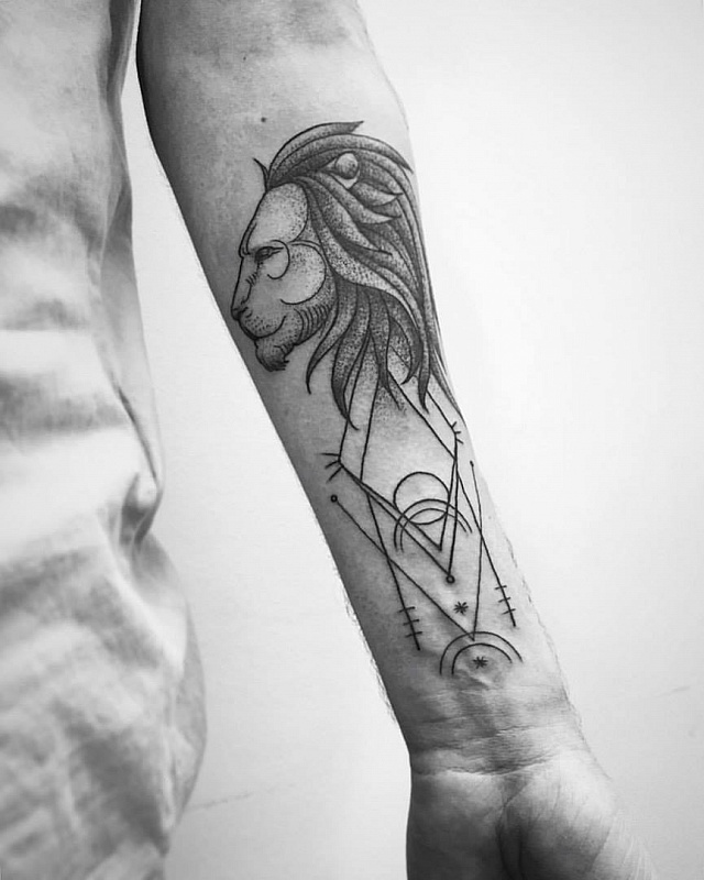 Léo est vénéré dans toutes les directions culturelles. Un tatouage avec un animal formidable possède des traits de caractère spéciaux: sagesse, grandeur, richesse, pouvoir noble et fidélité. Indépendamment de la foi du propriétaire du tatouage, la signification de l'ornement reste presque la même. Les bouddhistes pensent que l'ornement du lion n'apporte que de la chance et souligne le caractère courageux. Et plus important encore, une personne est le maître de sa parole et de lui-même, de ce fait indépendante. La foi chrétienne sous la forme d'un lion dépeint Jésus-Christ. La Bible a utilisé à plusieurs reprises le lion, qui a été rapproché de l'apôtre Marc. L'Islam croit en la puissance du lion et croit que cet animal est un protecteur des forces du mal. Les Juifs décrivent souvent un animal puissant avec des ailes. Un tel ornement relie deux éléments terrestres (la terre et l'air).