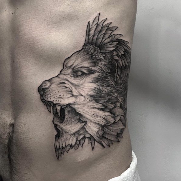 Tatouage de Lion attaquant