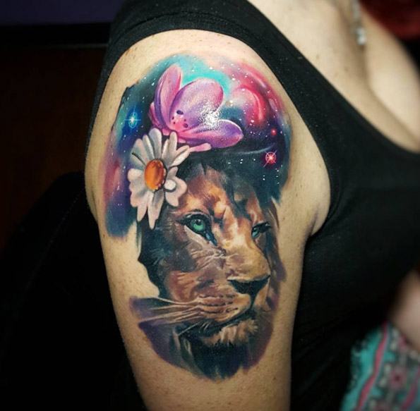 Tatouage de lion couleur