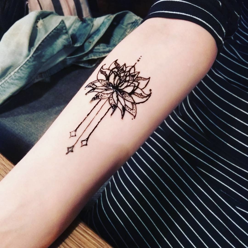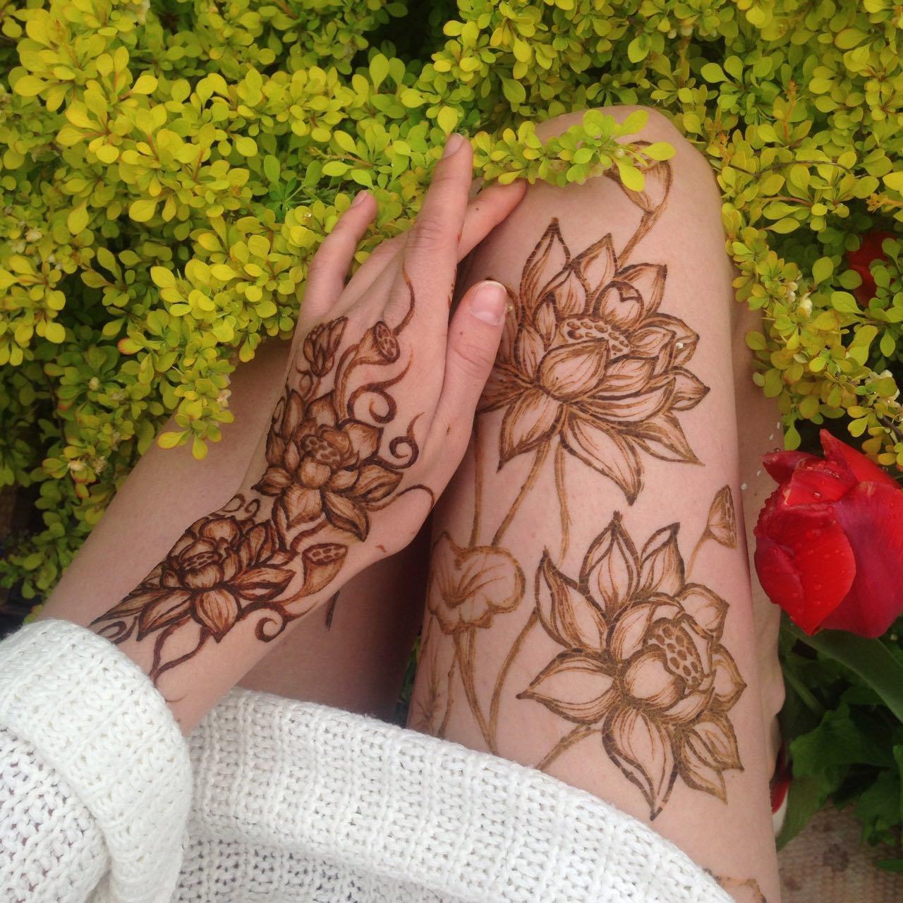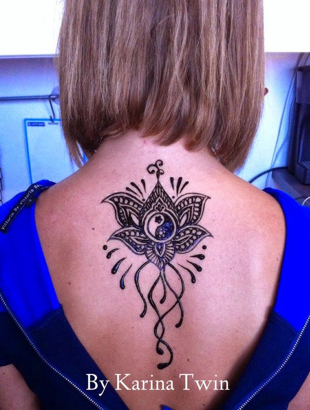 Pour ceux qui veulent décorer temporairement leur corps avec une fleur de lotus envoûtante, vous pouvez utiliser le henné. Un tel tatouage est absolument sans danger et sans danger. L'image s'efface avec le temps, mais vous pouvez dessiner l'image autant de fois que vous le souhaitez. Un tel tatouage temporaire peut durer d'une semaine à un mois, en fonction des soins apportés au tatouage, des propriétés de la peau et, bien entendu, de la qualité de la peinture. Les tatouages temporaires peuvent également être réalisés avec des encres chimiques et biologiques. Un lotus à base de henné aura l’air naturel. Vous pouvez sentir la beauté et la puissance de ce symbole, même temporairement.
