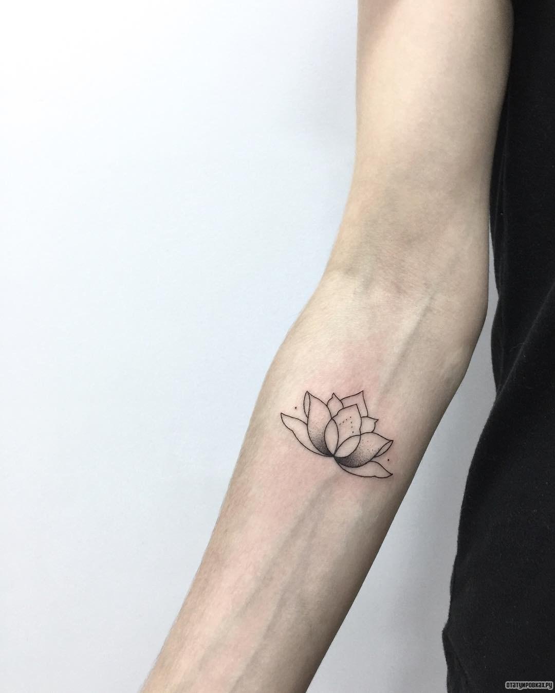 Si vous êtes fan de tatouages petits et discrets, l'option mini tatouage est faite pour vous. La solution la plus optimale pour appliquer un petit lotus symétrique sera l'arrière du cou ou du poignet. Également très mignonne et soignée, cette superbe fleur se penchera sur la cheville ou la partie supérieure du pied. Les idées d'un tatouage allongé semblent très harmonieuses sur l'avant-bras, la jambe ou les côtes, mais le tatouage de forme ronde sur l'épaule, la hanche ou la poitrine.