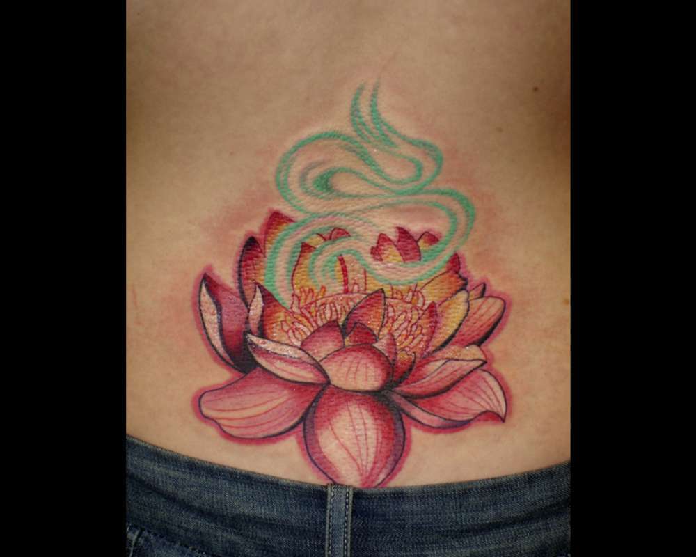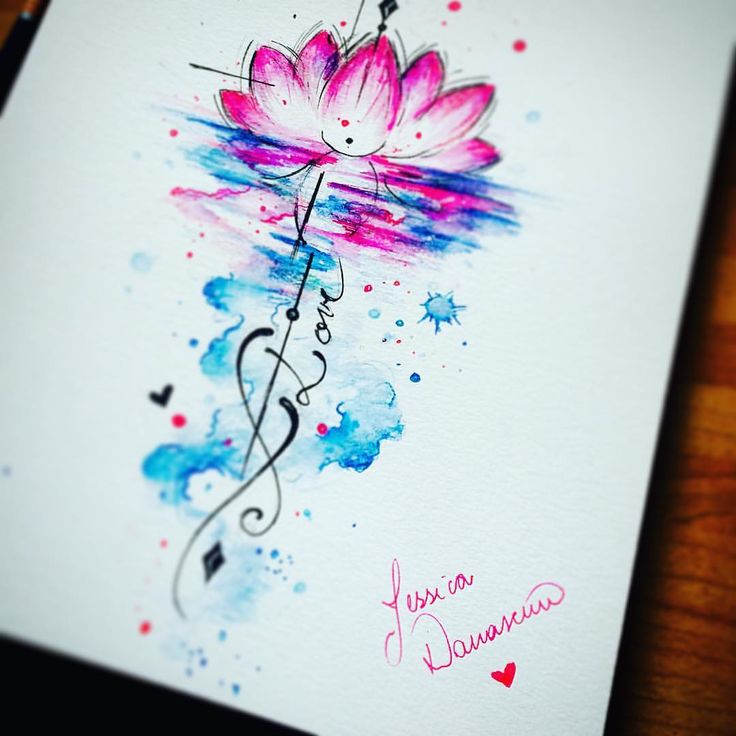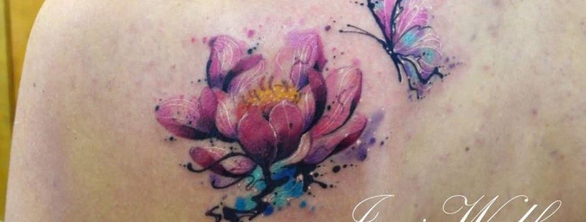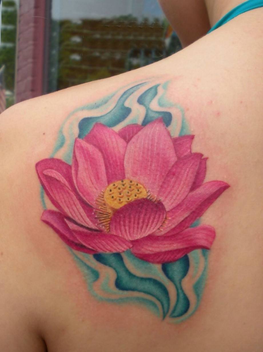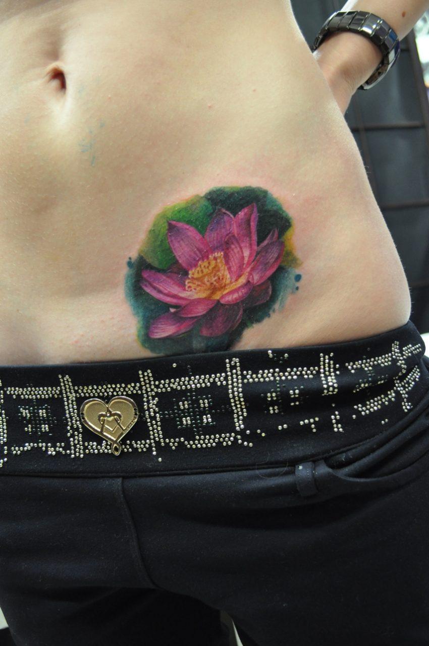 Le plus souvent, les dessins du corps d'un lotus coloré sont réalisés par des représentants des pays de l'Inde ou de la Chine. Ils sont plus réalistes et fabriqués dans un style psychédélique. Aujourd'hui, les tatouages aquatiques sont populaires. Cette vue vous permet de représenter un dessin, certes pas très réaliste, mais très beau et délicat. Le seul inconvénient des tatouages en aqua est le coût élevé d'une peinture de haute qualité, mais pour créer un excellent tatouage, vous ne devez pas épargner de l'argent. Sinon, le dessin à l'aquarelle perdra son expressivité et l'image sera tout simplement «perdue».
