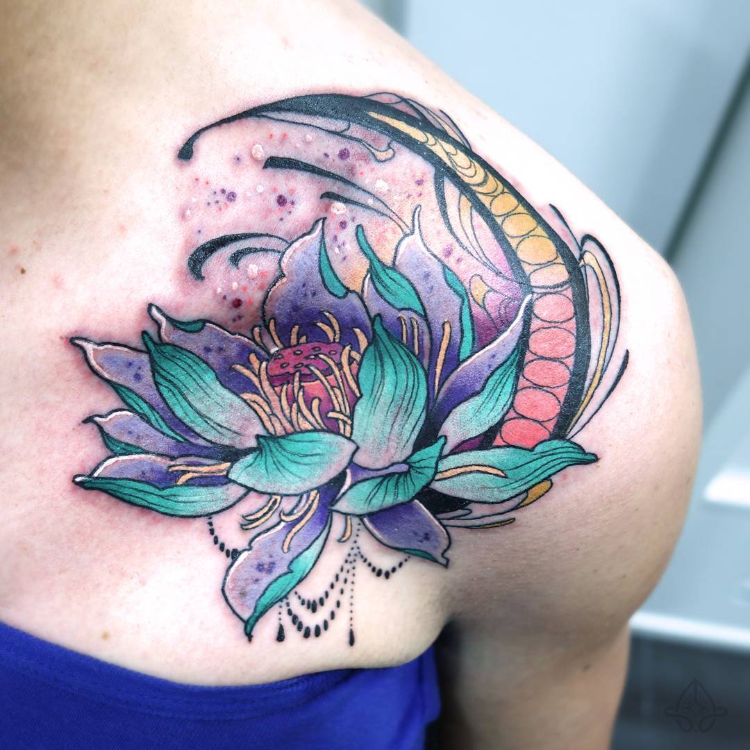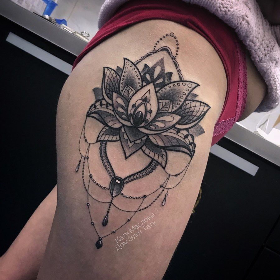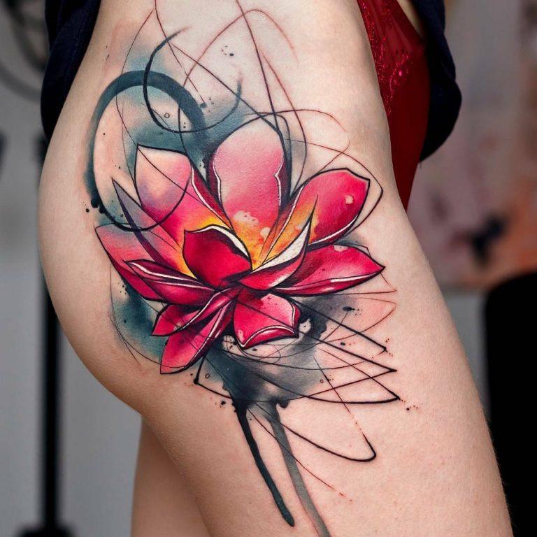 Lotus Tattoo: signification, croquis, techniques de réalisation avec exemples dans la photo