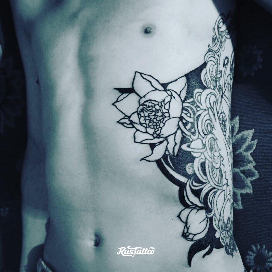 Les graphismes sont l’un des styles populaires de tatouages de lotus monochromes. La particularité de ce style réside dans l'utilisation de l'ombrage à la place des ombres et des dégradés. De nombreuses personnes attribuent à tort le travail effectué en noir aux graphiques, mais ce n'est pas le cas. Tous les points forts de ce style sont les éclosions. Vous ne pouvez pas dépasser la technologie d'origine dans le style de dotwork. Traduit de l'anglais, le nom de cet art de tatouage se traduit par "travail ponctuel". Sa particularité est que toute l'image est constituée de points exécutés à un certain intervalle. De nombreux éléments de ce type, un excellent motif est formé. Les tatouages Lotus dans cette technique ont fière allure sur n'importe quelle partie du corps. Tout dépend de la taille du tatouage désiré.
