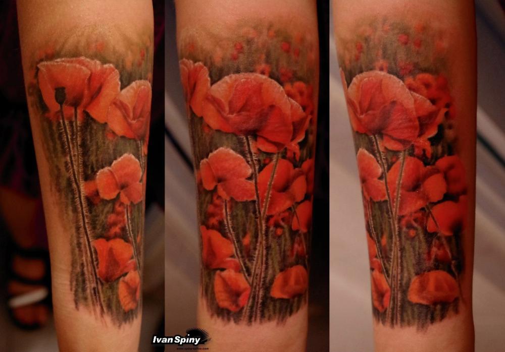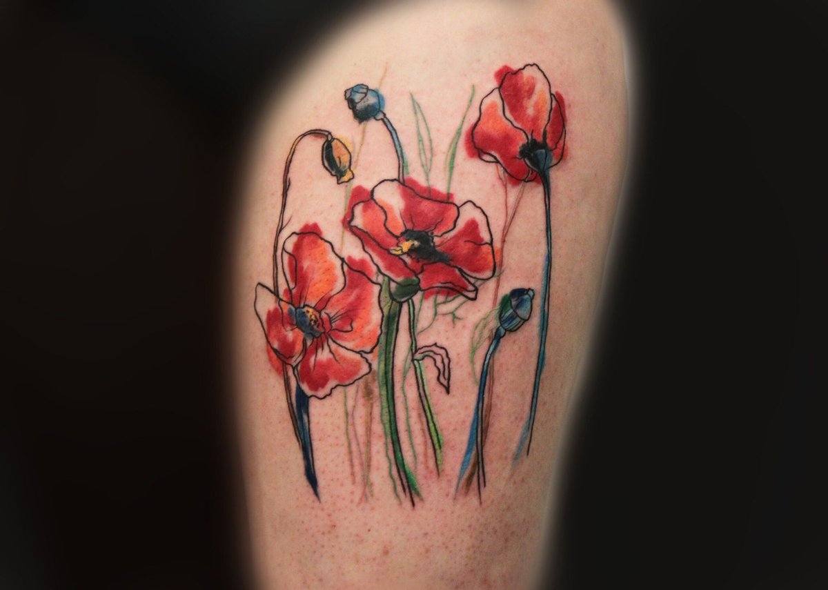 Souvent, les coquelicots sont représentés sur la cuisse, les épaules, les côtes ou les avant-bras. De petits coquelicots se farcissent au cou, au pied ou au poignet. Une fleur qui s'enroule autour de la cheville ou au poignet aura l'air très originale pour les filles. Un seul dessin a l'air plus féminin et détendu. Si vous décidez de faire un tatouage à grande échelle, alors l'endroit est sur son dos. En outre, cet endroit est parfait dans le cas où un grand nombre de petits détails seront présents dans la composition corporelle. Par tradition, l’équipe de l’armée place des tatouages sur la poitrine. Cela est dû aux médailles qui sont généralement accrochées à la poitrine.