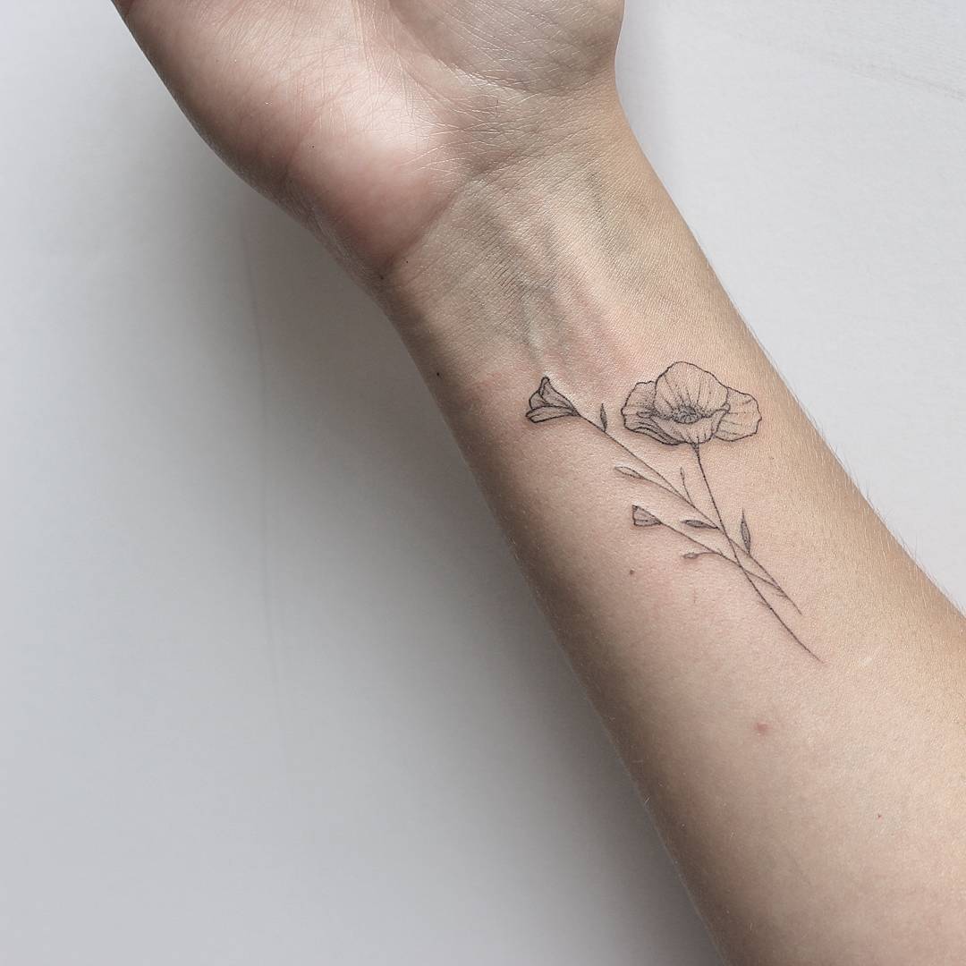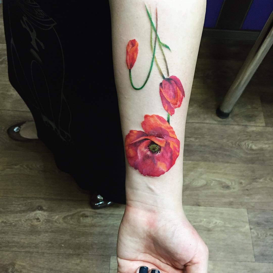 Tatouage de pavot: Sens pour les filles et les hommes, beaux croquis, photos dans différents styles