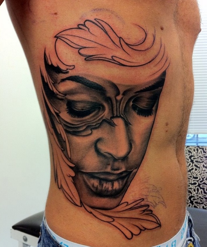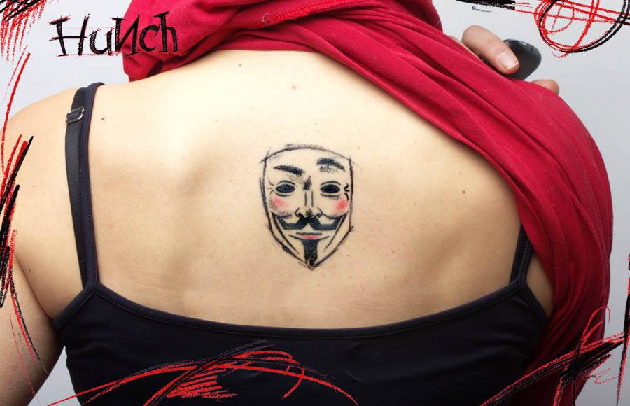 Les tatouages sous la forme d'un masque hollywoodien sont très populaires chez les hommes. Ce tatouage a emprunté son thème aux films hollywoodiens. Et elle personnifie l'horreur et la cruauté. Pour les hommes, les tatouages à l’image de deux masques conviennent également. Un autre tatouage très populaire est un masque de vendetta. La grimace, qui sourit, a un sens ambigu: à première vue, un sourire, mais quelque chose de sinistre se cache derrière elle.