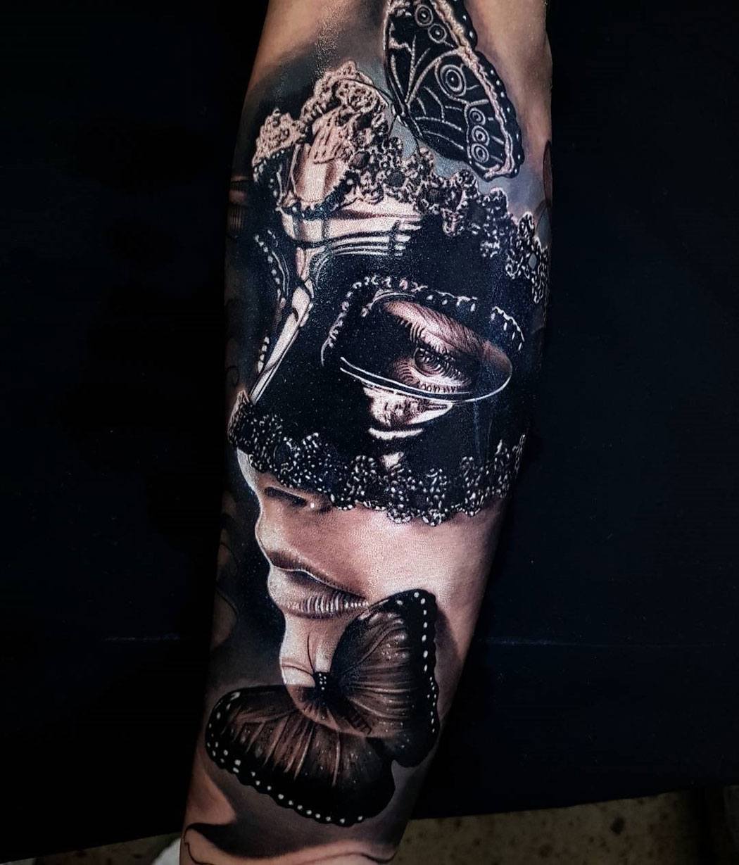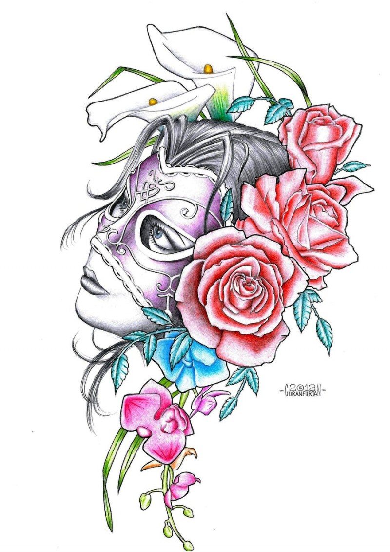 Tatouage "L'image d'une fille dans un masque"