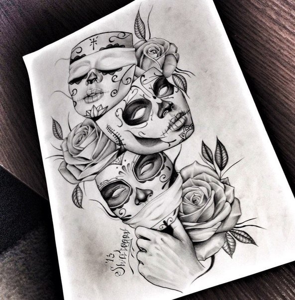 Chicano est un style de tatouage très populaire et célèbre. Le masque de tatouage Chicano désigne certaines qualités d'une personne qu'il cache. Un tel masque n'exprime qu'une émotion spécifique. Et il existe un avis selon lequel le masque Chicano possède des propriétés protectrices. Les tatouages peuvent être réalisés à la fois en version monochrome et en couleur. Les tatouages de masque Chicano sont plus appropriés pour les hommes. Mais aujourd'hui, vous pouvez les rencontrer avec des filles qui ont un caractère audacieux, même dans une certaine mesure, masculin.