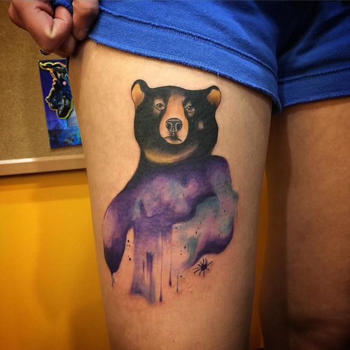 Tatouage d'un ours dans un style aquarelle.