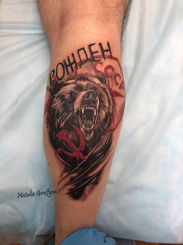 Un tatouage avec une image d'un ours est choisi par des personnes courageuses qui ont un caractère fort et qui sont disposées à défendre leurs principes, idéaux et intérêts. Traditionnellement, les guerriers appliquaient un tel tatouage, persuadés que l'ours les protégerait certainement des traîtres, aideraient à prendre la bonne décision dans une situation difficile et donneraient du courage. Aujourd'hui, la signification d'un tatouage avec une image d'un ours est pratiquement préservée dans sa forme originale.