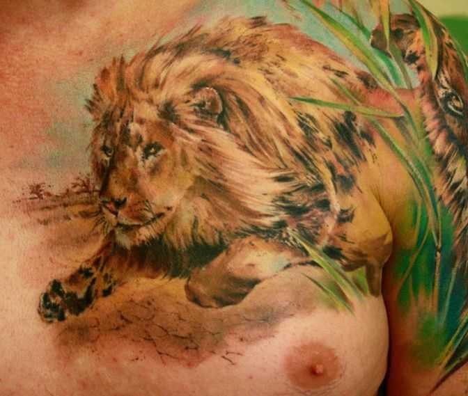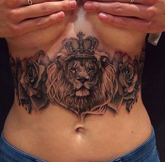Tatouage poitrine de lion: options féminines inhabituelles