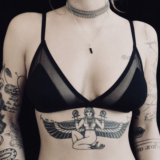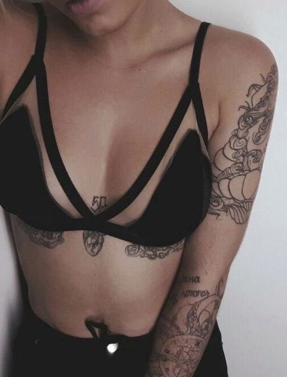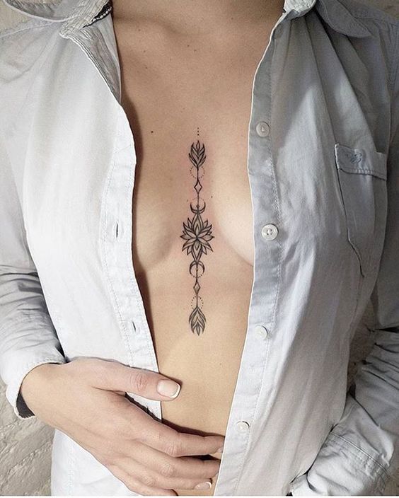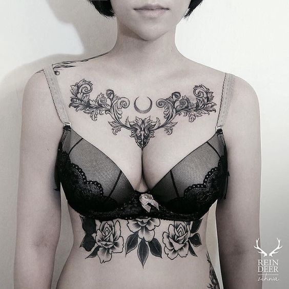 Tatouage entre les seins: un design inhabituel pour les femmes