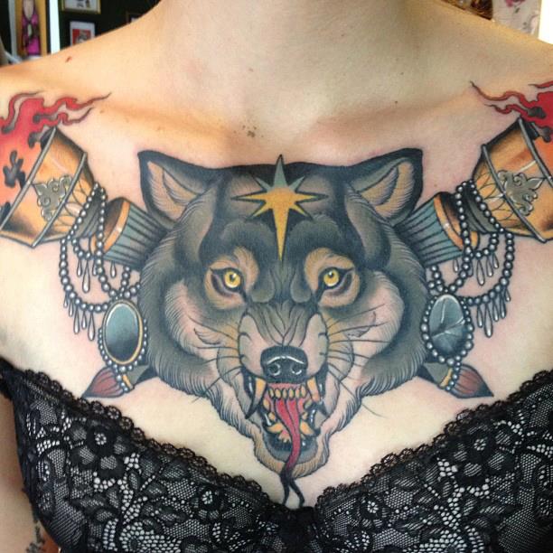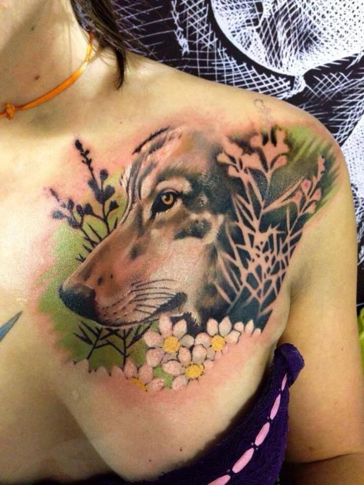 Tatouage d'une femme loup sur sa poitrine: beauté sauvage, individualité et originalité