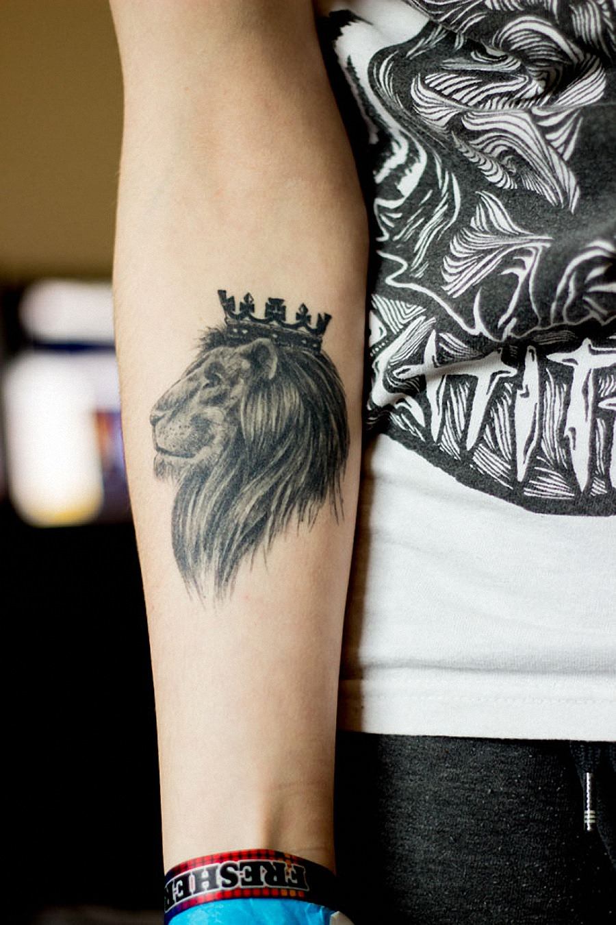 La taille de l'avant-bras vous permet de mettre ici l'image de n'importe quel animal. Parmi les options communes, on peut distinguer un lion, personnification du courage, du pouvoir, de la fierté et de la justice. Mais l'image d'une lionne a une signification légèrement différente. On pense qu'un tel tatouage symbolisera le bonheur féminin et la joie de la maternité.