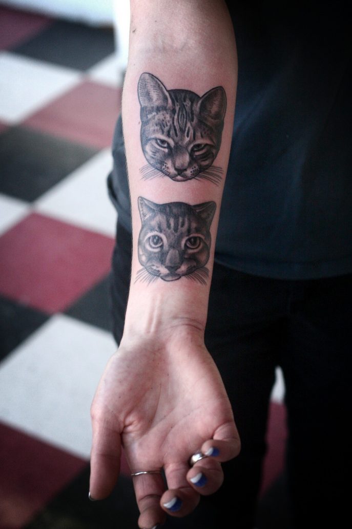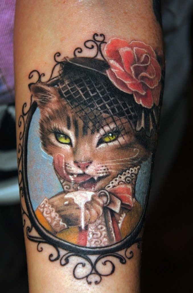 Vous voyez souvent un chat sur l'avant-bras, ce qui indique l'indépendance et l'ingéniosité du propriétaire d'un tel tatouage. Bien que vous puissiez trouver d'autres interprétations plus controversées de cette image. Par exemple, les Indiens croient que le chat est la personnification des forces diaboliques, voire du vol. Mais chez les Grecs et les Romains, cet animal est associé à la liberté. Si vous plongez dans les subtilités religieuses d'un tel modèle, alors les chrétiens ont longtemps doté cet animal de pouvoirs démoniaques.