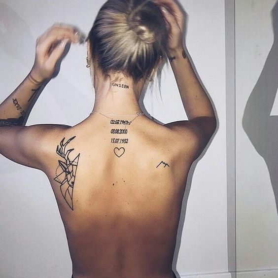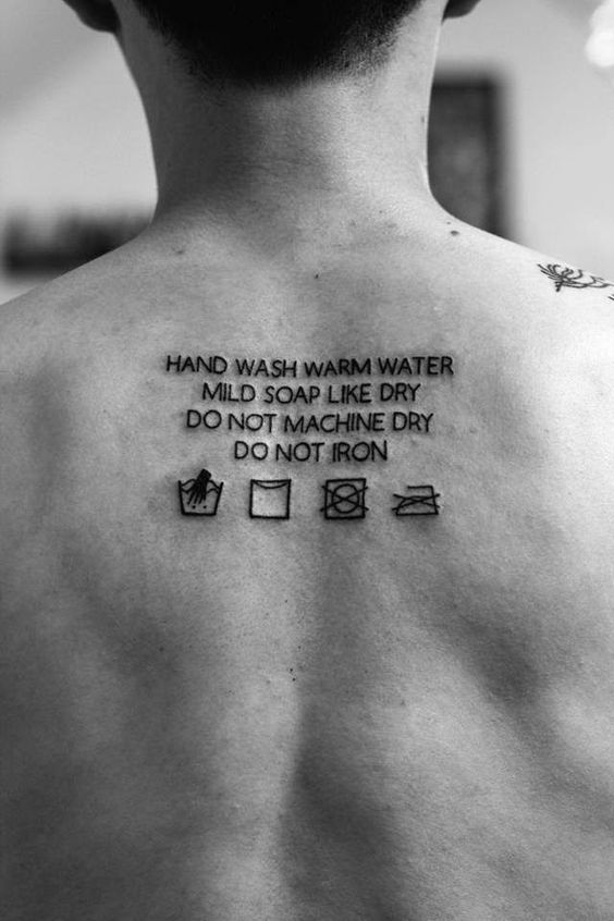Très souvent, les inscriptions de tatouage sont effectuées sur le dos. C'est ici que tu peux errer. Les phrases peuvent être volumineuses avec un nombre illimité de mots. L'inscription de tatouage sur le dos peut être faite en utilisant absolument n'importe quel type de police. Très populaire est l'option de réaliser des inscriptions de tatouage sous la forme d'une inscription verticale sur toute la longueur de la colonne vertébrale. Selon le désir, le tatouage sur le dos peut être petit et invisible, et peut être grand, volumineux et complexe. Composition corporelle à grande échelle - un choix fréquent pour les hommes. Les femmes préfèrent les esquisses plus modestes.
