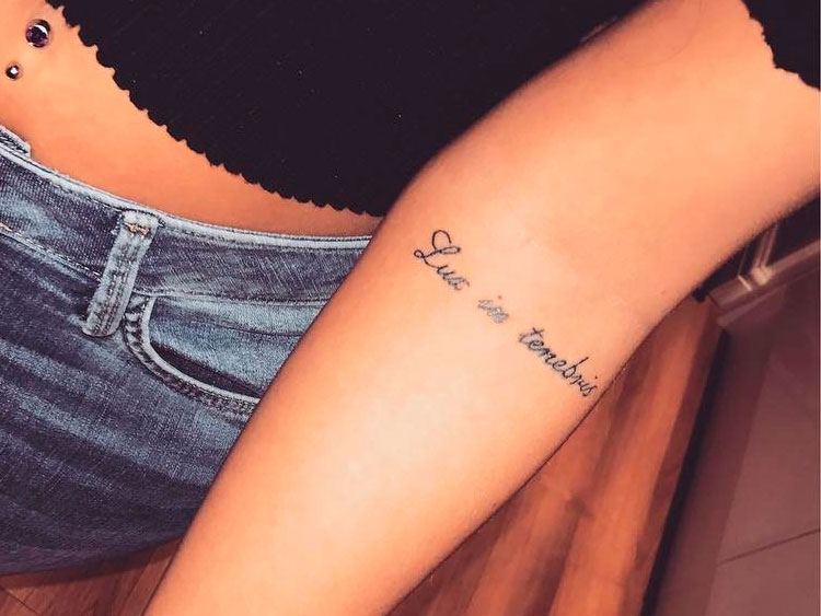 Le latin est le géniteur de toutes les langues. Pour exprimer des pensées philosophiques, assurez-vous de vous référer au latin. La beauté et l'originalité d'un tel tatouage pour fille seront garanties par le maître. Les inscriptions en arabe ne peuvent être ignorées. Non seulement les inscriptions sur le corps de la femme sont très belles, mais en plus, la langue arabe est la langue des sages de l’Est. Les citations des paroles des sages de l'Est ne faisaient pas exception dans le monde des tatouages à la mode.