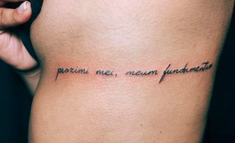 Les tatouages pour hommes sous forme d’inscriptions ressemblent davantage à une version classique capable d’exprimer brièvement des pensées et des attitudes face à la vie.Les inscriptions en latin pour hommes sont élégantes et esthétiques et attireront certainement les regards du sexe opposé. Chez les hommes, l'endroit le plus populaire sur le corps pour l'inscription est la poitrine. Il y a suffisamment d'espace sur le buste masculin pour appliquer un grand nombre de mots ou utiliser une police plus grande. Il est à noter que cette inscription sera visible de loin et facile à lire.