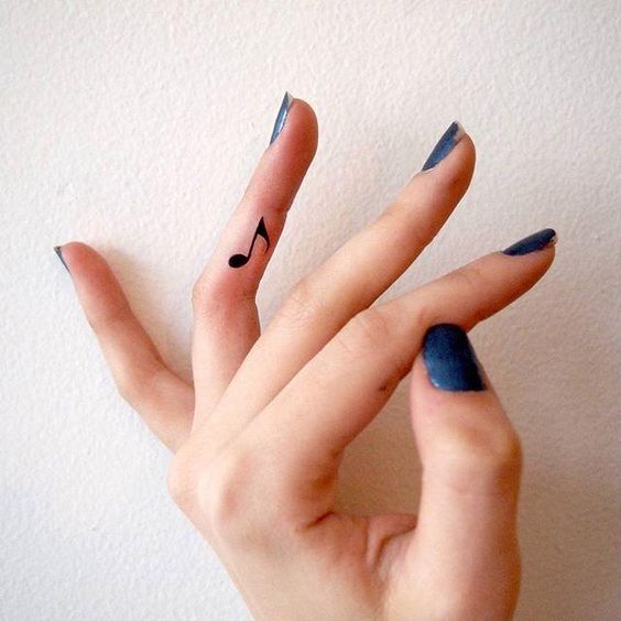Les petits tatouages en forme de notes ou de bâtis ont fière allure sur les doigts. Souvent, un tel tatouage peut être trouvé chez les hommes impliqués dans des activités musicales professionnelles. Mais un tel tatouage est également utilisé par les natures romantiques. Une portée musicale miniature créée au doigt peut reproduire un extrait d’un morceau de musique qui a de l’importance pour une personne.