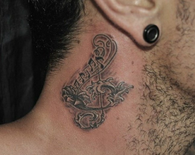 Les tatouages avec l’image de notes sur le cou sont principalement utilisés par les femmes. Bien que dans l'environnement musical, il existe de tels tatouages chez les hommes, également directement liés à la musique. Les motifs de note sur le cou sont principalement utilisés dans les petites tailles. Très probablement, ils peuvent être appelés miniatures. Un tatouage fait sur le cou derrière l'oreille suggère que vous êtes, dans une certaine mesure, une personne qui n'est pas de ce monde. La vie du propriétaire d'un tel tatouage est rythmée par sa propre mélodie.