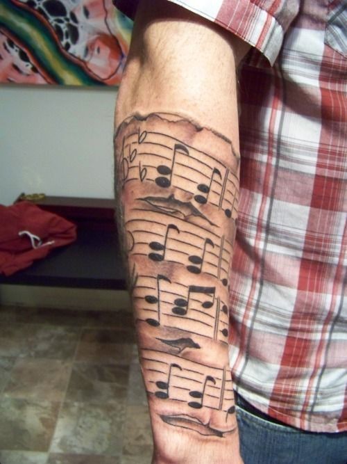 Les images sur le corps utilisant la portée sont apparues il n'y a pas si longtemps, mais ont acquis une grande popularité auprès des jeunes. Les tatouages avec l’image de notes au premier regard ont une origine féminine et tendre, mais sont aussi populaires chez les hommes. Les hommes utilisent souvent des notes dans un tatouage en combinaison avec un instrument de musique. Fondamentalement, un tel tatouage est préféré par les personnes impliquées dans la musique.