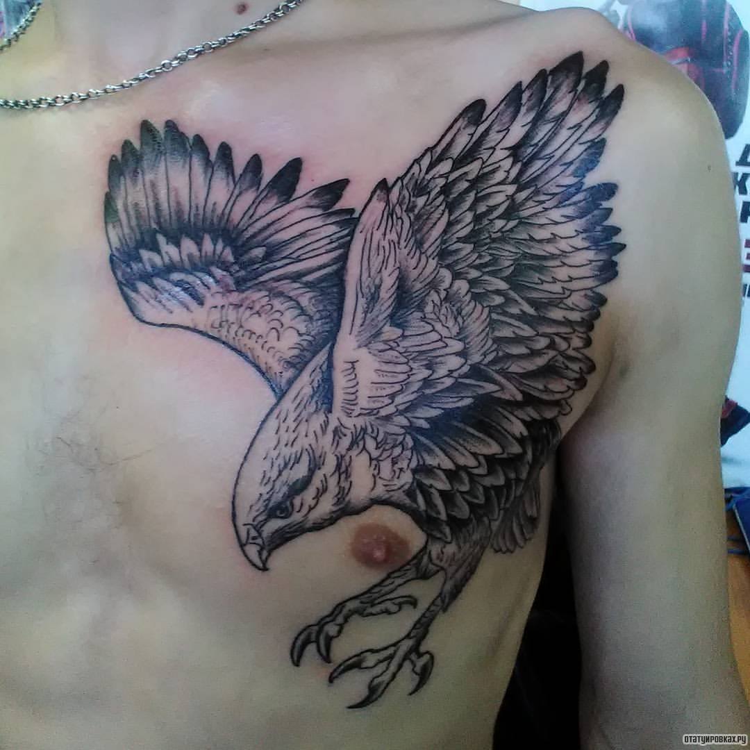Les personnes qui se sont fixé d’énormes objectifs, s’efforcent de les atteindre, choisissent souvent l’image d’un aigle sur leur poitrine. Les possesseurs de nature agressive choisissent des tatouages avec l’image d’un aigle se préparant à une attaque. On pense que le tatouage à l'aigle aidera une personne à atteindre de grandes hauteurs et lui donnera un sentiment de liberté et de souveraineté. Le dernier sens n'est pas la pose de l'oiseau. Un oiseau qui frémit indique qu'une personne évalue les personnes qui l'entourent depuis une hauteur, car il a déjà atteint de nombreux objectifs dans la vie.