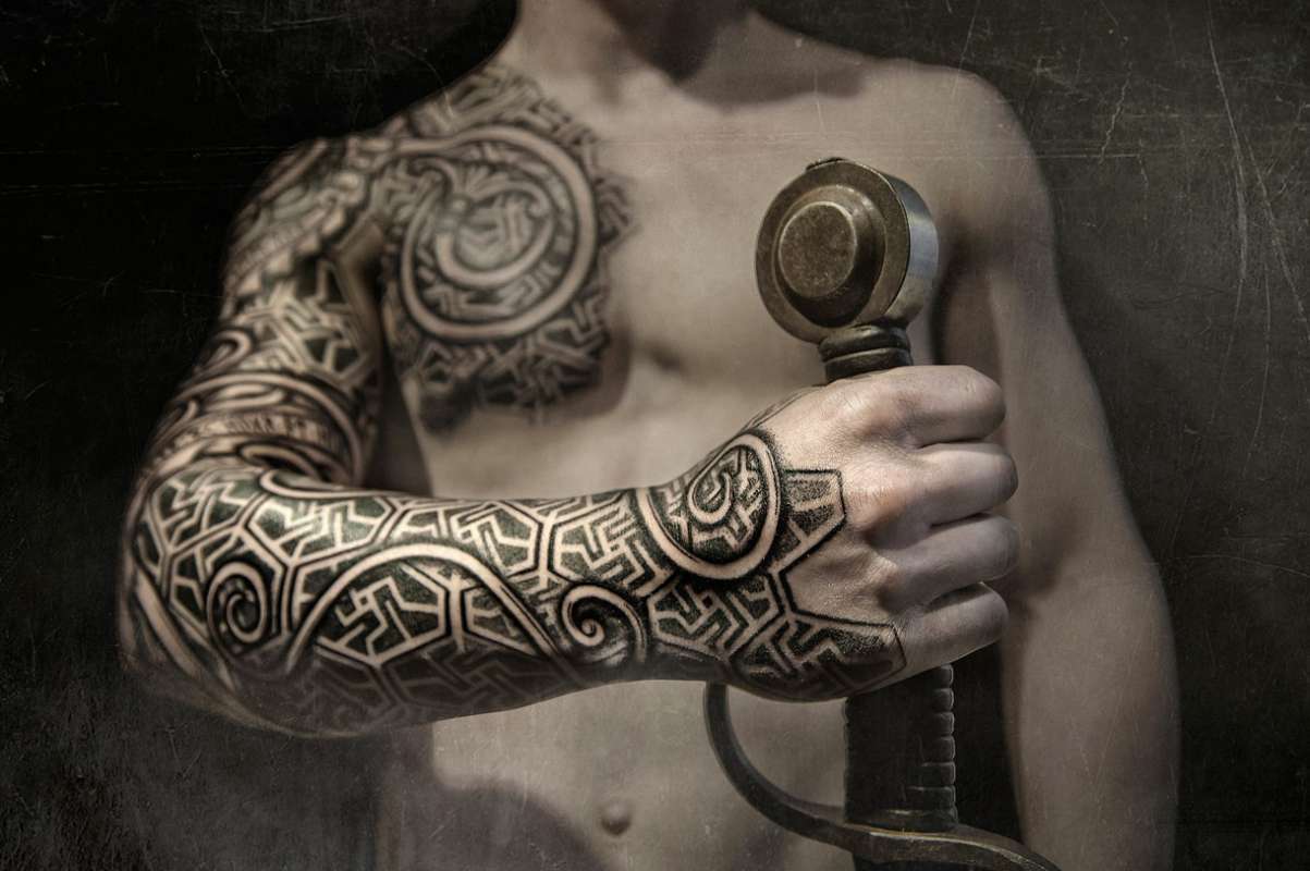 Les modèles et les ornements ne sont choisis que par des hommes courageux et résolus qui savent ce qu'ils veulent réaliser dans la vie et qui ont leurs propres objectifs. La moitié masculine de la société a beaucoup de sens dans cette direction des dessins de tatouage. Les styles les plus courants chez les hommes sont les styles scandinave, slave et celtique. Les ornements en pierre semblent inhabituels et intéressants. Le plus souvent, vous pouvez voir un tatouage avec une signification grave et profonde sur l'épaule, l'avant-bras, le dos ou la jambe.