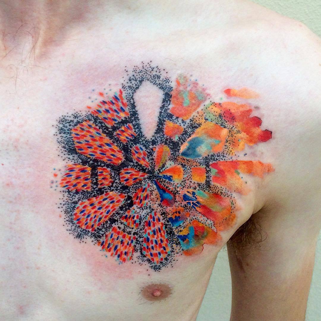 Les ornements de tatouage en couleur sont très courants sur les corps fragiles des filles. Les femmes à la nature douce et modeste préfèrent les motifs floraux et les motifs floraux pour exprimer la féminité et la tendresse. C'est aussi une excellente occasion de devenir plus attrayant pour les hommes. Les filles qui ont de grandes ambitions choisissent des motifs celtiques et scandinaves et appliquent le plus souvent de tels tatouages sur la cuisse, la poitrine, le dos ou la main.