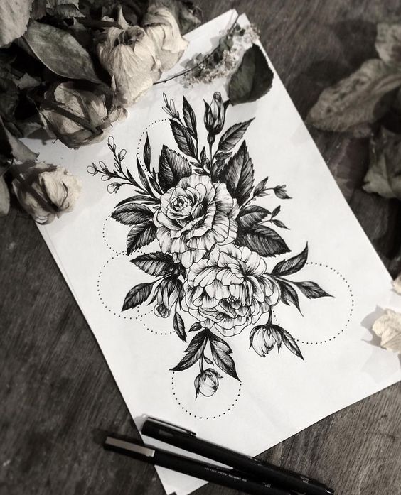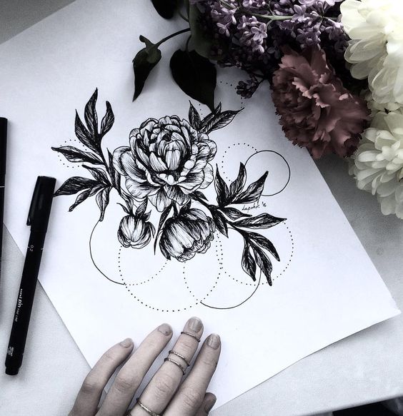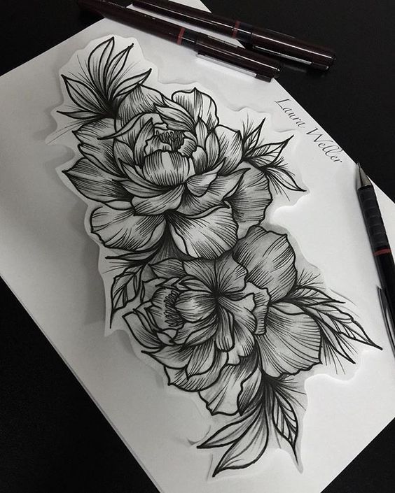 Peony Tattoo: Sketches, signification, sélection de photos parmi les options féminines et masculines