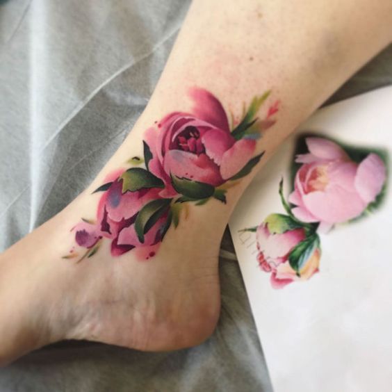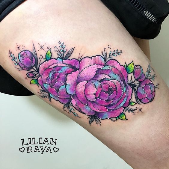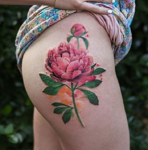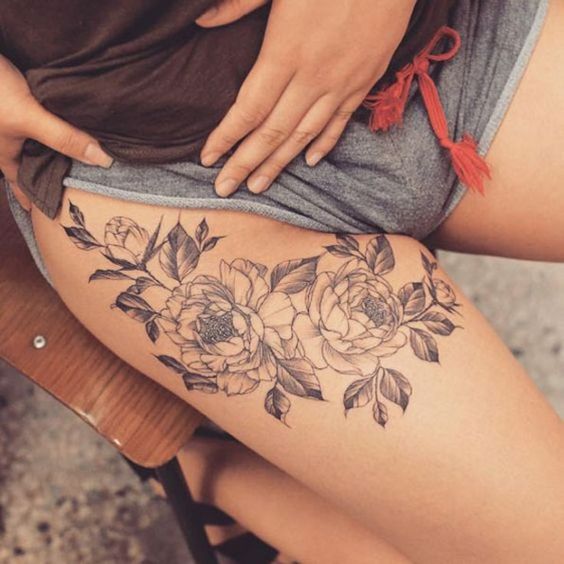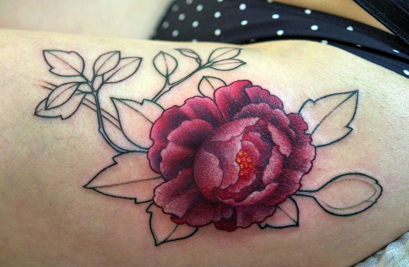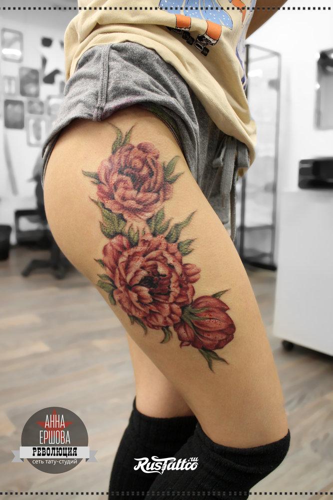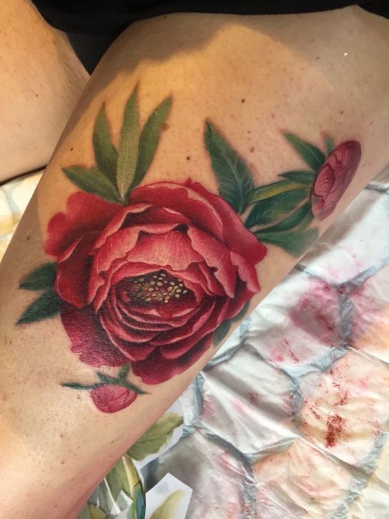 Si vous décidez de vous faire tatouer une pivoine, vous devez d’abord déterminer la partie du corps à laquelle vous appliquez le dessin. Si vous décidez que l'image de la fleur doit s'afficher sur votre jambe, plusieurs options s'offrent à vous. Les meilleurs endroits pour appliquer un tel tatouage sont considérés comme la cheville, la cheville ou la cuisse. Mais nous devons nous rappeler que l'emplacement du motif dépendra de la taille du tatouage lui-même, du nombre de pièces supplémentaires et de la signification générale. Si la taille de l'image portable est grande, cela signifie que la zone d'application doit être grande en conséquence. Pour de telles images, la cuisse est l'endroit le plus approprié et n'a pas d'importance pour un homme ou une femme.