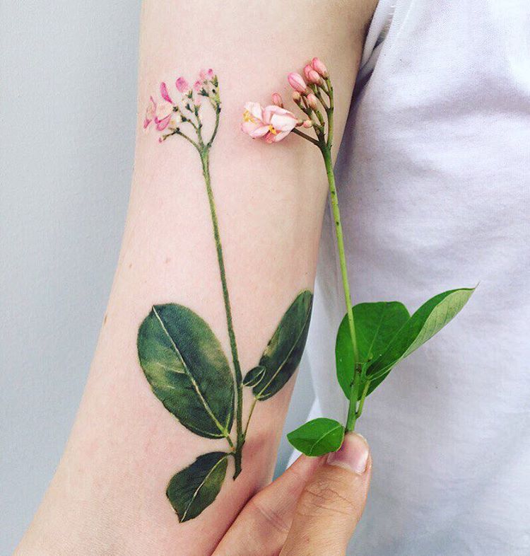 Les filles se caractérisent par des images plus tendres et mignonnes. Les dessins préférés des dames sont sans aucun doute les fleurs. Orchidées, pivoines, roses - tout cela attire l'attention des filles lors du choix d'un tatouage. Souvent, les fleurs complètent les oiseaux exotiques et un fond contrastant. Ces créations portables seront toujours à l'honneur, en particulier chez les hommes.