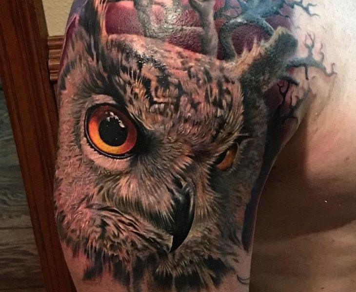 Auparavant, les tatouages de hibou portaient une signification mythique, mais maintenant ce n’est plus le cas. Beaucoup de gens pensent qu'un hibou est un oiseau très sage et libre. Très souvent, un hibou signifie longévité et est associé au temps.Souvent, cet animal est réalisé dans le style du réalisme avec une combinaison de montres, ou les yeux d'un oiseau sont effectués séparément comme un cadran. Les gens qui ont choisi l'image d'un hibou dans le style du réalisme sont sages, avec une attitude ferme, un esprit fort. Pour certains, cette image peut servir d'amulette personnelle pour la chance.