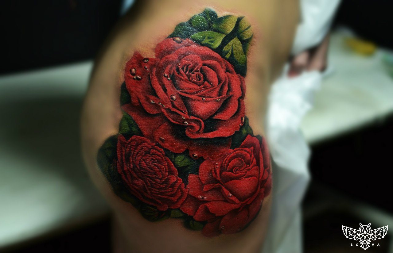 La signification d'un tatouage avec des roses dépend principalement de sa couleur, des éléments supplémentaires et de l'intrigue. La signification principale des roses est la beauté, à la fois interne et externe. En outre, la rose est associée à un grand et sincère sentiment d'amour. La rose, faite dans le style du réalisme avec des pointes, dit que l'amour est douloureux, apporte un malaise. Parfois, le dessin est appliqué pour afficher un sentiment d'amour. La palette de couleurs de l'image en dit aussi beaucoup: