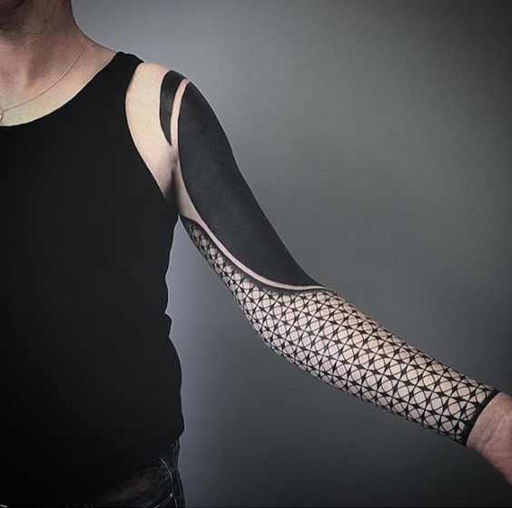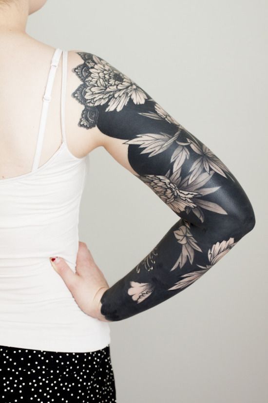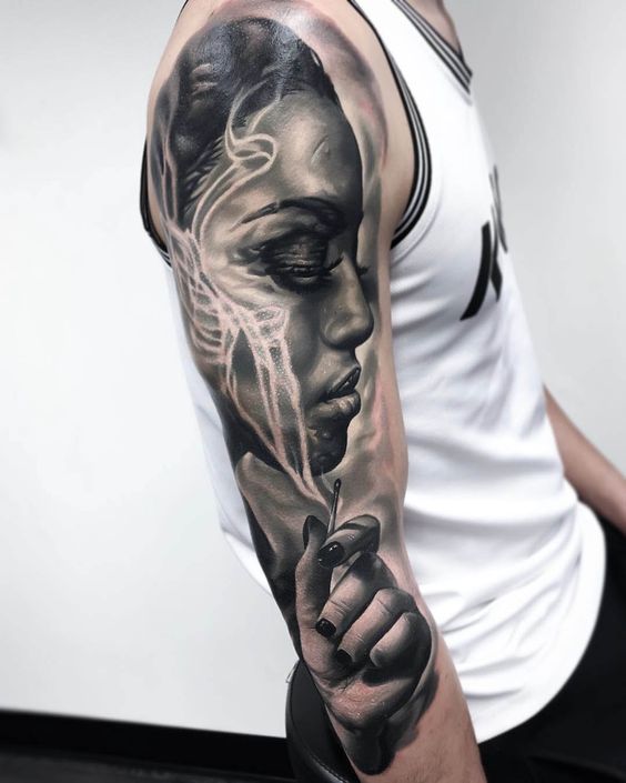 Le travail au noir est un genre de conception de tatouage où l'image est un avantage de la couleur noire avec le remplissage maximum de la zone du bras. Toutefois, cela n’affecte pas les modèles de sous-vêtements. Il y a des options quand ils remplissent simplement une partie du corps avec du noir, ce qui semble très brutal.Chicano est l'option idéale pour créer un tatouage noir unique sur votre bras. À première vue, le sujet du tatouage peut sembler un peu sombre, mais si vous regardez de plus près, vous pouvez considérer le sens profond, le reflet des positions de vie et des valeurs morales de la personne représentée. Souvent, ils représentent le visage de la jeune fille, ainsi que des crânes, des croix, des visages de célébrités, des phrases et des devises, des thèmes bibliques.